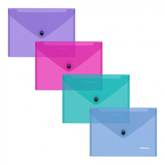 - Le dossier enveloppe a5 est fabriqué en plastique semi-transparent de haute qualité avec une texture de surface « brillante » (miroir). Destiné au stockage de documents. Couleurs assorties : bleu, vert, rouge, transparent. Fermeture à bouton fiable pour un accès rapide aux documents. Taille -175 x 220 mm, épaisseur - 0,16 mm