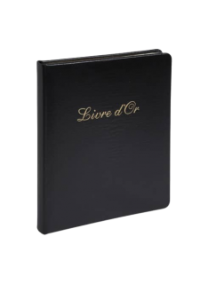 Chic et classique avec sa couverture en simili-cuir, ce livre d'or de qualité vous permettra de conserver le souvenir des moments forts de la vie. Aux conférences, aux congrès Dans un hôtel de ville, un restaurant ou un gîte ou lors d'un mariage, un livre d'or peut être rédigé par les clients ou les invités pour qu'ils témoignent de leur passage. Contient 140 pages blanches unies, tranche or. Emballé en coffret cadeau cristal.