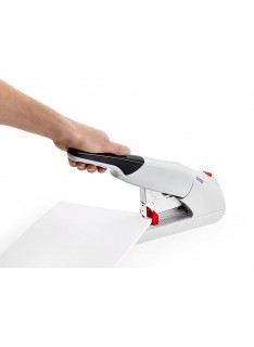 Agrafeuse grande capacité jusqu'à 210 feuilles profondeur d'agrafage 75mm, les parties principales de l'appareil sont fabriquées entièrement en métal pour garantir une stabilité maximal, Cet appareil peut fonctionner avec des agrafes du type 23/8 à 23/24 Super. Il est possible de mettre au maximum 100 agrafes dans le chargeur, la profondeur d'agrafage maximale pour le papier est de 75 mm. Avec le système de chargement à ressort, le système porte-agrafes s'éjecte automatiquement par l'avant. Il peut ainsi être chargé en pressant le bouton situé à l'arrière de l'appareil.