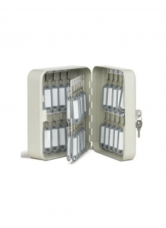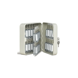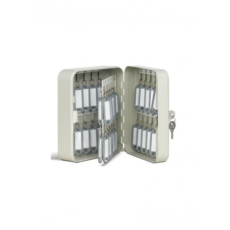 - Boîte de 45 clés - Porte-étiquette -Visserie pour fixation murale- Tôle d'acier emboutie - Peinture vernis - Barrette d'accrochage réglable en hauteur - Bande d'indexation numérotée -Répertoire intégré -Serrure à barillet - 2 clés.