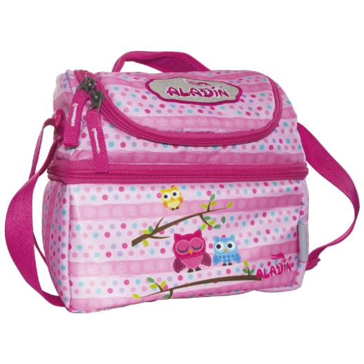 - Marque: Aladin - Description produit: Porte goûter isotherme CHOUETTE - Nombre de compartiments : 2 compartiments - Fermeture: Eclair - Matière de fabrication : Polyester 600×600