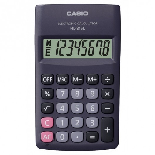 Calculatrice Casio HL-815L de poche, basique, facile à utiliser convient pour une utilisation en dehors du bureau ou du lieu de travail. Calculatrice de poche, avec affichages de 8 et 1 ligne affichée. Convertisseur de devises, Calcul des impots. La source d'alimentation est une batterie AA. Couleur du produit: Bleu.