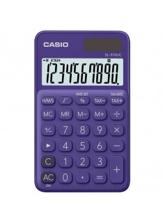 Calculatrice de Poche CASIO - Ecran LCD à 10 chiffres - Sources d'alimentation: Solaire ou Pile - Fonctions: Calcul des taxes - Pourcentage de marge bénéficiaire - Signes de commande de fonction - Clés en plastique - Dimensions: 118 × 70 × 8,4 mm - Poids: 50 g - Couleur: Violet .