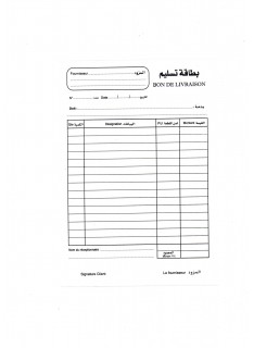 Carnet bon de livraison Ribat - Nombre d'exemplaire: 2 - Format: Grand format(27,5x21) - Nombre de feuille: 20x2F - Texte identique sur les 2 feuillets - Couverture en carton pour protéger les bons - Justificatif pour les marchandises livrées.
