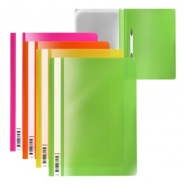 Chemise à lamelle avec perforation A4 est fabriqué en plastique de haute qualité avec une texture de surface « diagonale », sur laquelle les empreintes digitales et les petites rayures ne sont pas visibles. Destiné à l'agrafage, au stockage et à la visualisation rapides de documents. Couleurs assorties