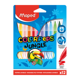 - Stylos feutres lavables pour dessiner et colorier - Marque: MAPED - Retrouvez cet incontournable de la rentrée dans une version résistante aux couleurs vives, spécialement conçue pour un usage quotidien à l'école ou à la maison. La gamme de feutres Color'Peps Jungle possède une pointe de balle de 2,8 mm conçue pour être très résistante et anti-affaissement. Leur encre lavable permet un nettoyage facile des textiles en machine ou à l'eau savonneuse pour les mains.