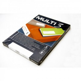 Etiquette blanche Multi 3 - Format: 70x42,4 mm - Étiquettes adhésives permanentes - Colle acrylique à base d'eau - Taille de la feuille: Din A4 - Nombre de feuilles par pack: 100 Feuilles - Nombre par feuilles: 21 - Couleur: Blanc.