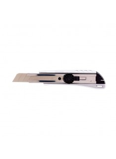 Cutter grand modèle Deli E2045 - Spécifications: Taille: 160 × 40 × 23MM - Matériel: Alliage de zinc + acier au carbone - Taille de la lame: 0,5 × 18 × 100MM - Type de lame: 8 lames cassables - Couleur: Argent.