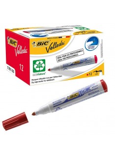 Marqueur BIC Pour Tableau Blanc Velleda Ecolutions 1701 - Quantité incluse dans le paquet: 12 - Encre effaçable à sec - Encre à base d'alcool - Corps plastique - Capuchon aux couleurs de l'encre - Marqueur sans PVC avec pointe ogive moyenne - S'efface facilement même après plusieurs jours - Couleur : Rouge .