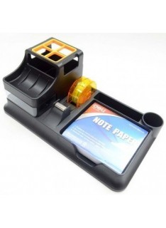 Organisateur de bureau avec accessoire Deli E38252A - Matériau PP de haute qualité - structure solide- 7 compartiments pour contenir 14 petits articles - Base rotative pour un accès facile - 250 × 140mm-couleur : Noir - Accessoires livrés avec : agrafeuse n ° 10 - décapant d'agrafes - agrafes (1000pcs) - ciseau- petit couteau - gomme - 2 crayons HB - 1 stylo à bille (0,7 mm noir) - règle de 15 cm -devidoir avec scotch- taille crayon - 150 feuilles (10,7 x 9cm) - clips de reliure (4pcs) - trombones (20pcs) - punaise (10pcs) .