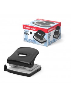 Perforatrice avec bac à confettis. Perfore jusqu'à 35 feuilles. Corps et mécanisme en acier de haute qualité. Mécanisme garanti 2 ans. Les lames aiguisées perforent facilement une quantité maximale de feuilles. Le coussin de base en plastique empêche la surface de la table de se rayer.
