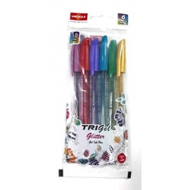 - Pochette de 6 Stylos gel avec brillance glitter - Couleur: jaune vert bleu violet rouge et rose - Pointe: 1mm -Marque: UNIMAX