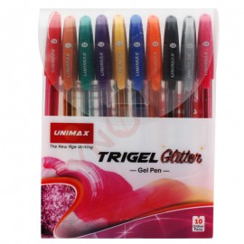 - Paquet de 10 stylos gel glitter - couleur: argent, doré, orange, marron, violet et rose -Marque: UNIMAX