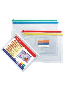 La poche zippée A5 est en plastique transparent de haute qualité avec une texture de surface "pétillante" (peau d'orange), sur laquelle les empreintes digitales et les petites rayures ne sont pas visibles. Destiné au stockage et au transport de documents. Couleurs assorties - turquoise, bleu foncé, violet, rose. Fermeture éclair pratique pour un accès rapide aux documents, poche pour carte de visite. Il peut contenir jusqu'à 100 feuilles de papier.