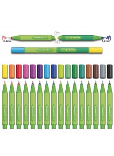 Schneider Le premier fineliner qui se combine à volonté grâce à un système intelligent . Et avec un épaisseur de trait 0.4 mm. On ne combine pas seulement ses couleurs favorites, mais aussi différents système d'écriture (Fineliner et Fibre). Le modèle cap-off peut rester ouvert pendant 2-3 jours sans sécher. Le corps triangulaire ergonomique caoutchouté permet une prise en main sûre et décontractée, même s'il est utilisé en stylo individuel avec le capuchon réversible, il ne roule pas sur le bureau. Grâce à sa forme fine, il s'adapte parfaitement à chaque trousse. Le corps est fabriqué à 88 % en bio-plastique.