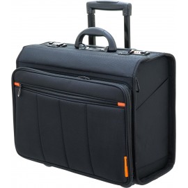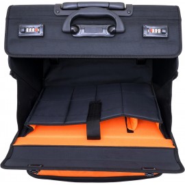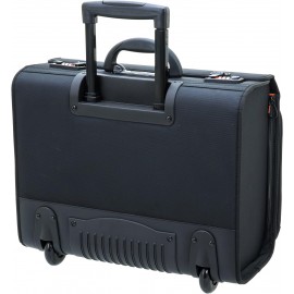 Pilot case à roulettes. Idéal pour les professionnels qui doivent transporter des choses lourdes et encombrantes sur de longs trajets. Outre le fait qu'il peut contenir votre PC 17" et votre tablette 10", ce pilot case dispose d'un compartiment unique d'une contenance impressionnante. L'ouverture est commandée par 2 serrures à codes et 2 zip latéraux pour faciliter l'accès. Robustesse et confort sont les qualités premières de ce produit..